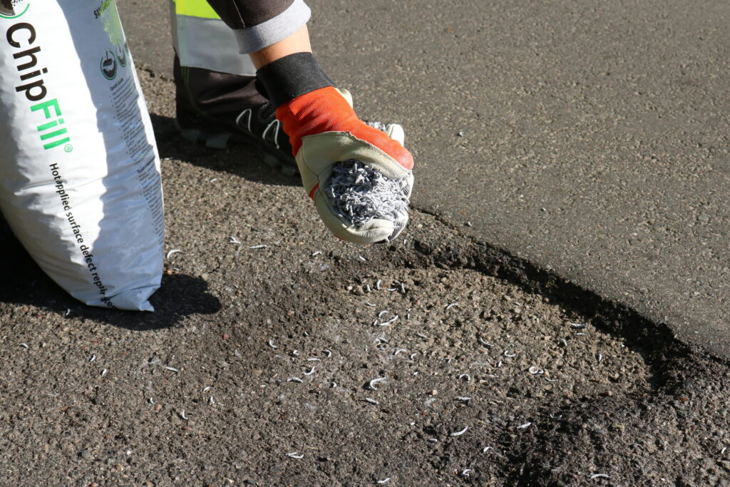 ChipFill er et system for reparasjon av overflateskader spesielt utviklet for å reparere mindre hull og sprekker opp til 25 cm og en maks dybde på 4-5 cm. Som navnet tilsier, består ChipFill av små fliser som er enkle å håndtere og påføre. Alt du trenger er en kost og en gassbrenner – og du er klar til å sette i gang!